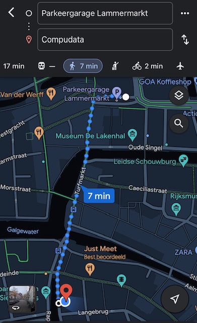Komt u met de auto? Parkeer uw auto bij parkeergarage Lammermarkt. Vanaf de garage is het 7 minuten lopen naar Compudata – Rapenburg 8.
