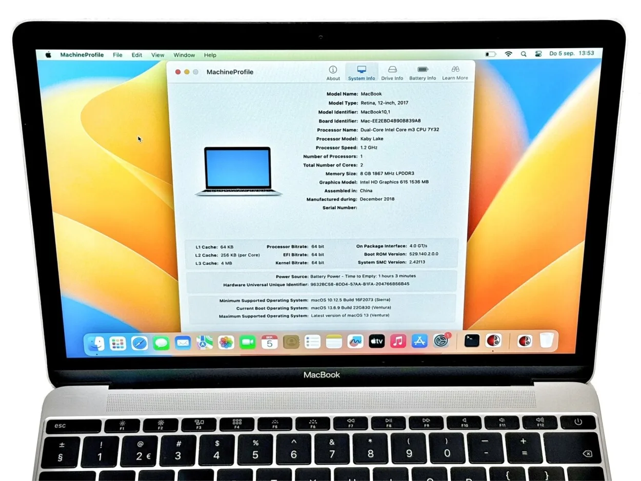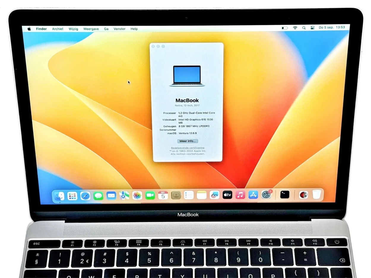De MacBook 2017 12″ heeft een strak en elegant ontwerp met een robuust aluminium chassis in de kleur zilver. Dit maakt de laptop niet alleen stijlvol, maar ook duurzaam en bestand tegen dagelijks gebruik. Het minimalistische ontwerp past goed bij zowel zakelijk als persoonlijk gebruik.