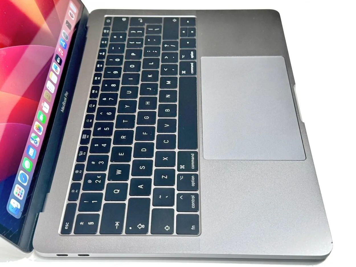 De MacBook Pro 2017 13″ heeft een robuust aluminium chassis in de kleur Spacegrey, wat zowel stijlvol als duurzaam is. Dit slanke en strakke ontwerp past zowel bij professioneel als persoonlijk gebruik, en de laptop is gebouwd om dagelijks intensief gebruik te doorstaan.