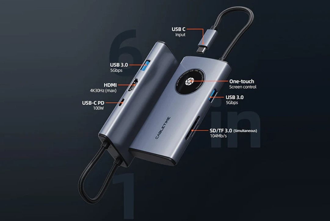 Cabletime – 6 in 1 Multi USB-C Hub adapter – 4K – HDMI – ook geschikt voor MacBook