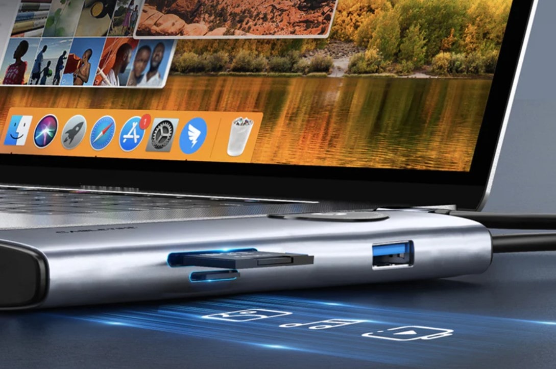 Met SD/TF kaartlezers is deze hub perfect voor fotografen of ontwerpers die snelle overdrachtssnelheden nodig hebben. Met leessnelheden tot 104 Mbps kun je eenvoudig foto’s of bestanden overzetten en zelfs twee kaarten tegelijk lezen.