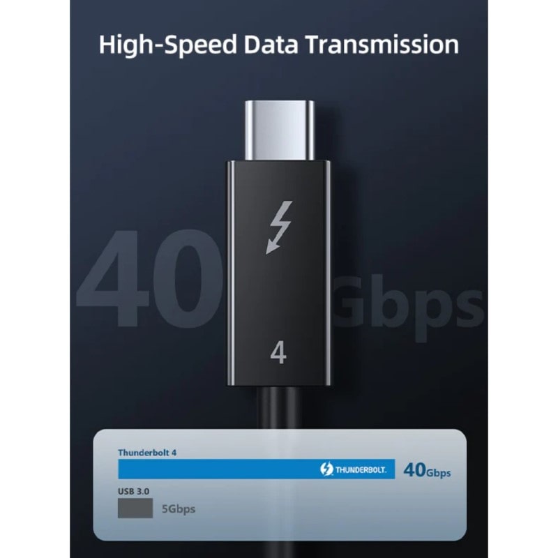 De kabel levert gegevensoverdrachtssnelheden tot 40Gbps, wat betekent dat je bijvoorbeeld een 4K-film in slechts enkele seconden kunt overzetten. Minder wachttijd, meer tijd om te creëren.