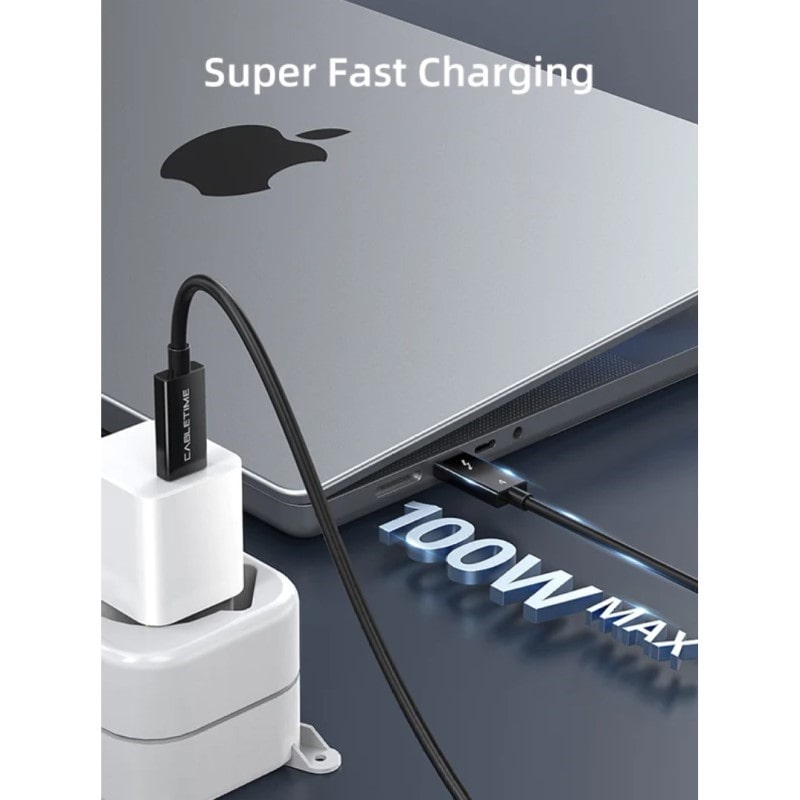 Met de Cabletime Thunderbolt 4-kabel heb je een krachtige alles-in-één kabel in handen. Deze kabel ondersteunt tot 100W aan stroom, razendsnelle gegevensoverdrachtssnelheden van 40Gbps en indrukwekkende 8k beeldresoluties tot 60Hz.