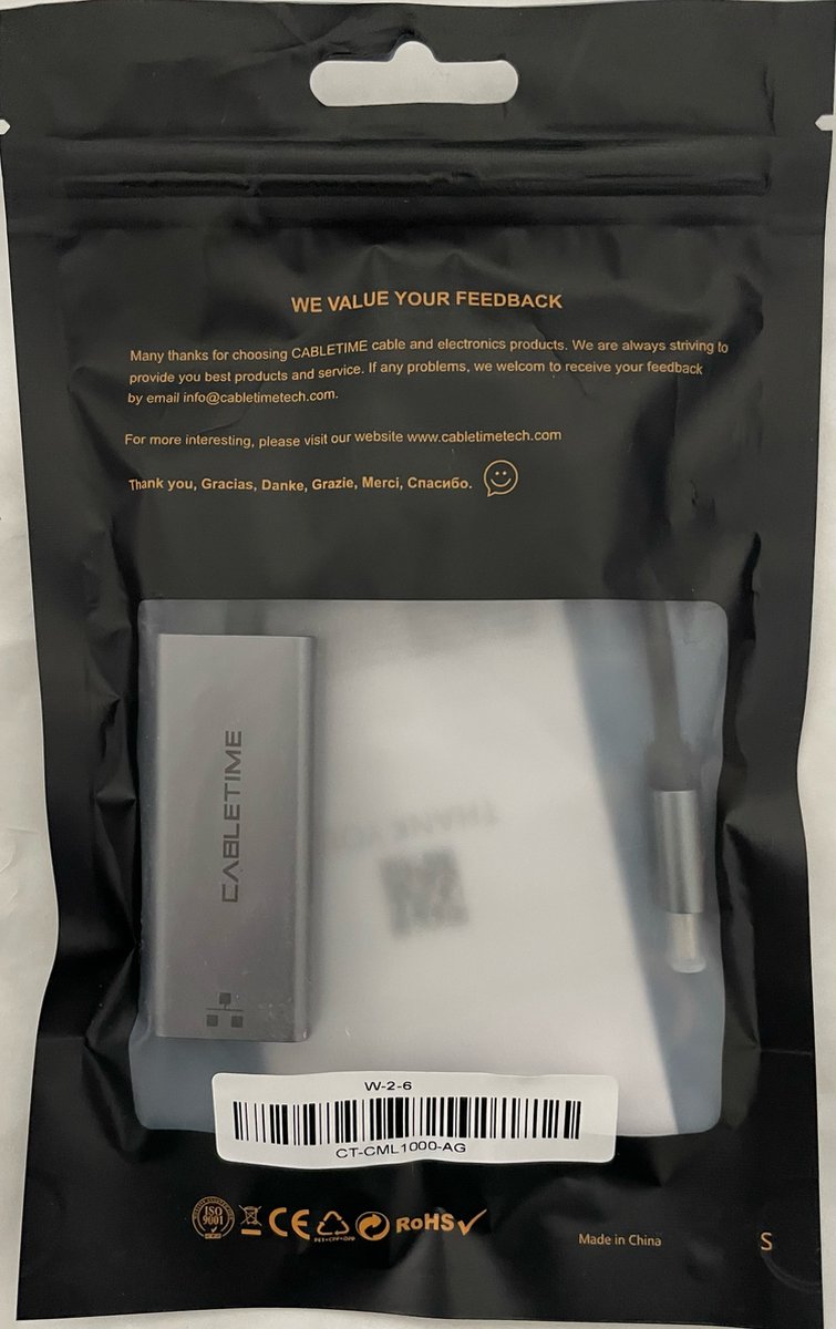 Cabletime USB-C naar RJ45 adapter – Gigabit LAN 1000Mbps